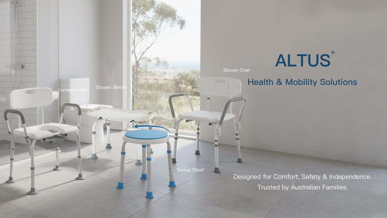Whether used in the shower, bathroom, or as a versatile support seat, the Altus Swivel Stool ensures confidence, independence, and comfort every day.