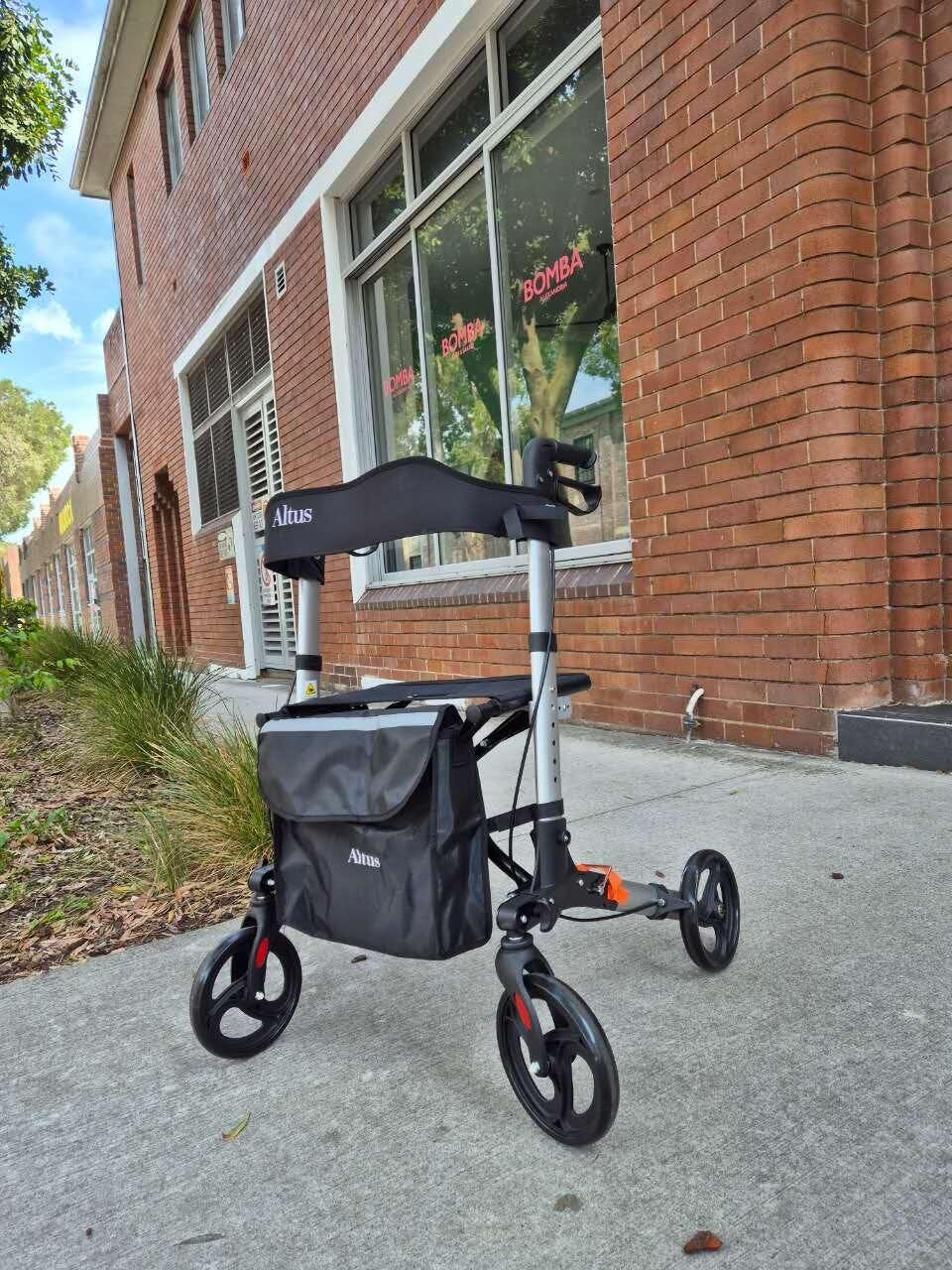 Altus Euro Walker Mobility Rollator Seat Rollator with Bag Aluminium Frame - Silver