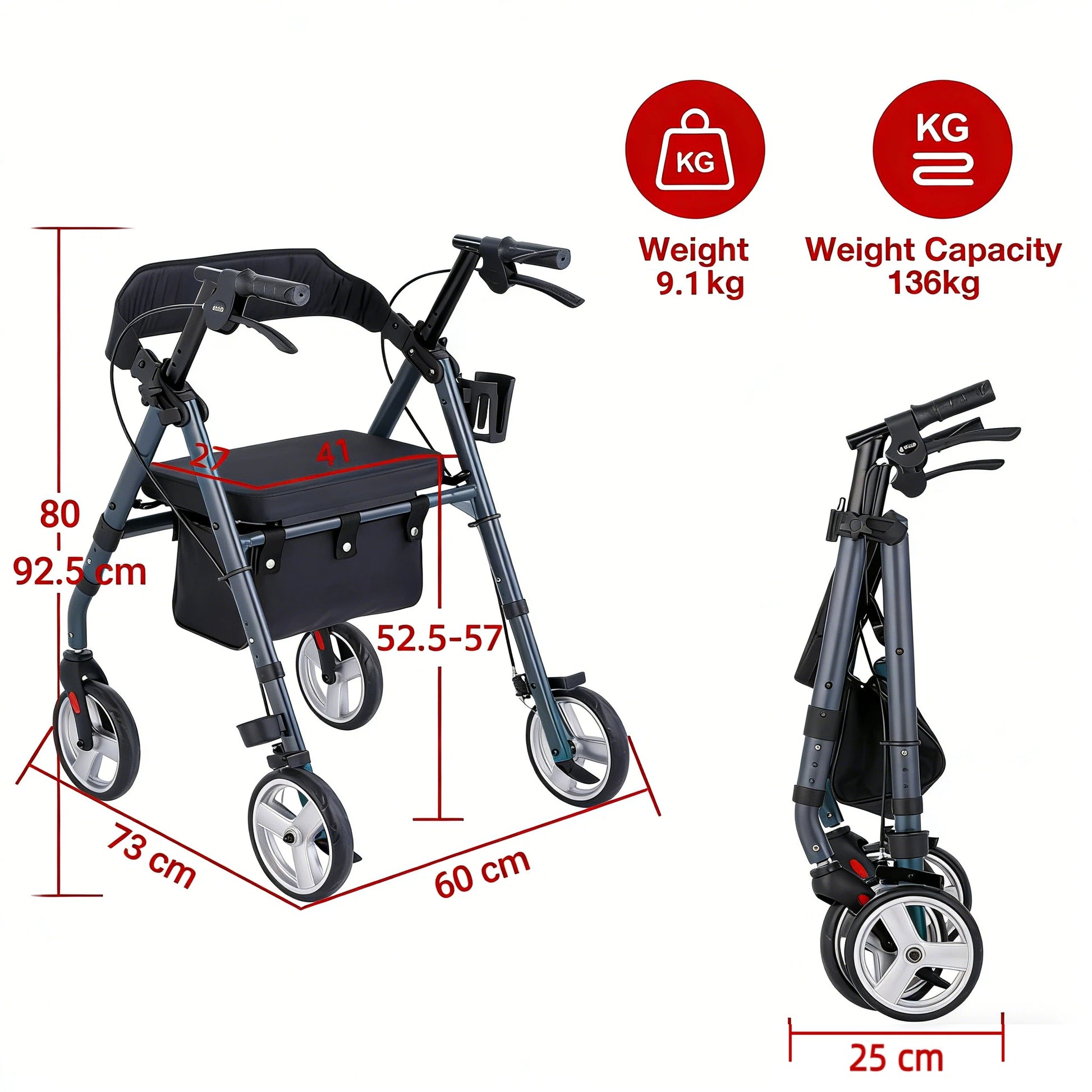 - Seat Size: 41 × 27 cm