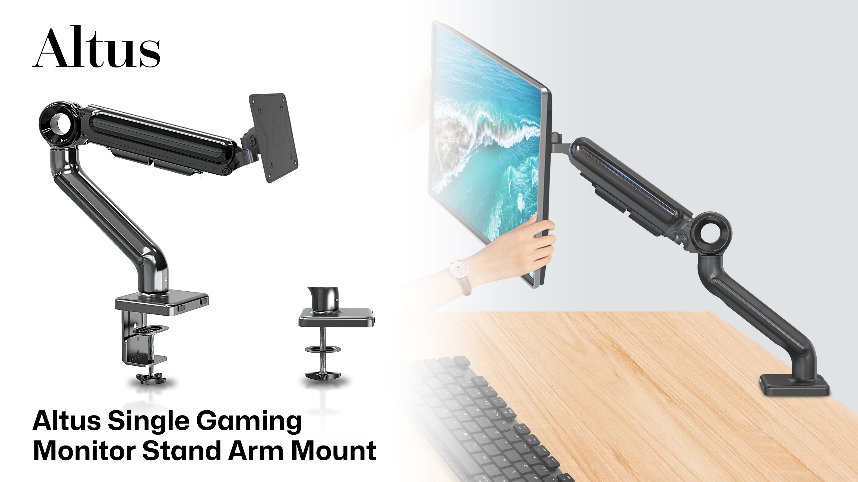 Altus Heavy Duty Single Gaming Monitor Arm Gas Spring Swivel VESA 35 inch Screen