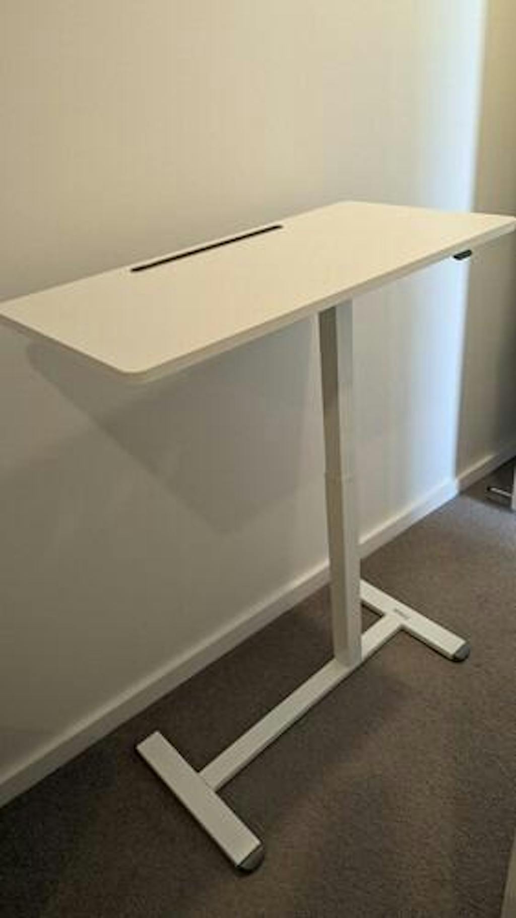 This is great. It was easy to assemble and is very sturdy. I bought it to use after my surgery, basically as a hospital tray table. But it can also be used as a mobile working station for later on. I do have a full size standing desk in my office, but if I ever wanted to work in another room, this desk would be perfect. It is easy to raise it up higher and you just need a little push to help you lower it back down.