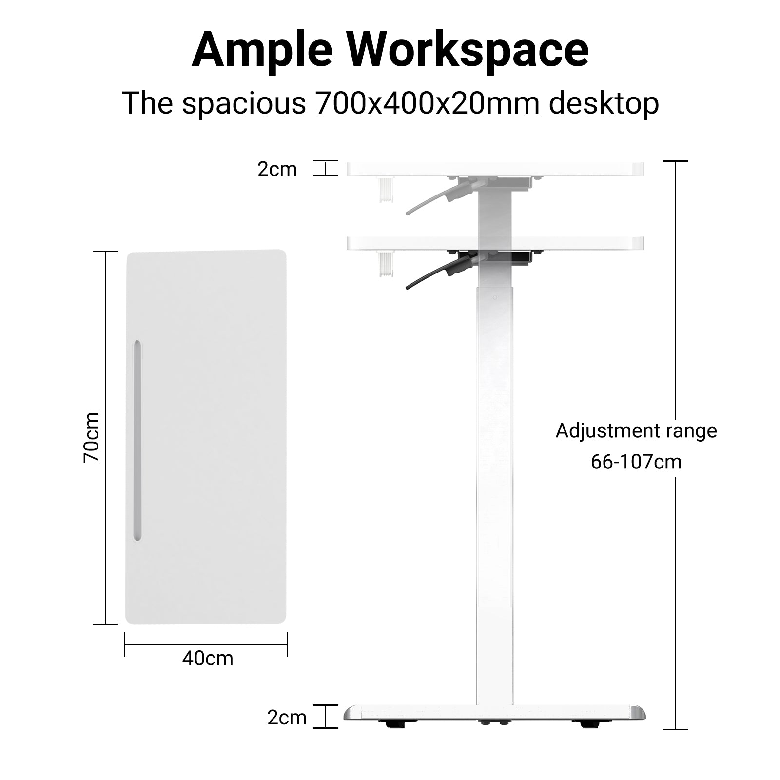 - Desktop Size: 70 x 40 x 2 cm