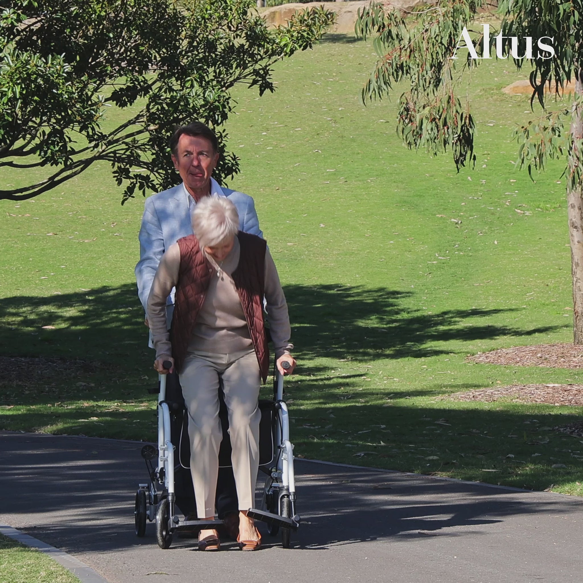 This hybrid combination Rollator and transit chair gives the best of both worlds. Rollator for walking and improving my fitness and a transit chair for when it gets too much for my muscles to walk and I can be pushed. It’s one of very few hybrid models that include arm supports when being used as a chair; and these help me to get in and out of the chair. Additionally, Altus have an excellent customer service department.