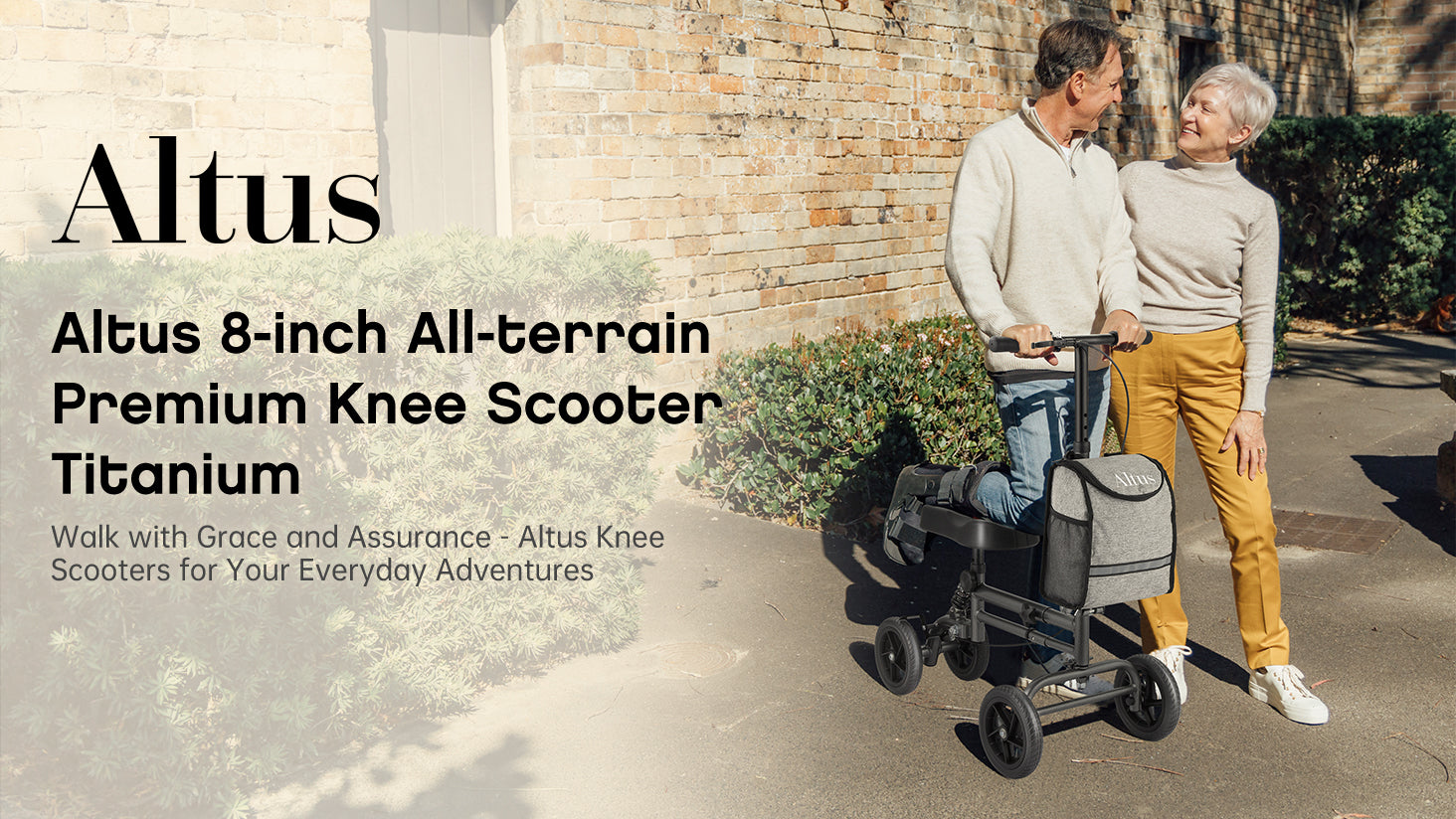 - Indoor & Outdoor Ready: The Altus Knee Scooter is designed for both indoor and outdoor use, allowing you to navigate smoothly on various surfaces.