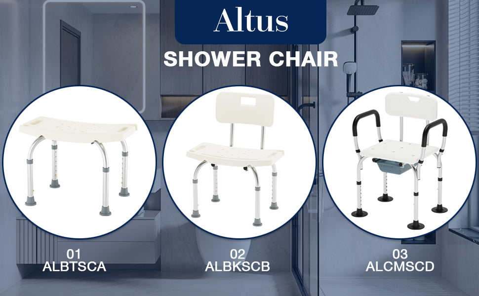 Altus Adjustable Shower Chair with Backrest Aluminium Frame Bathroom